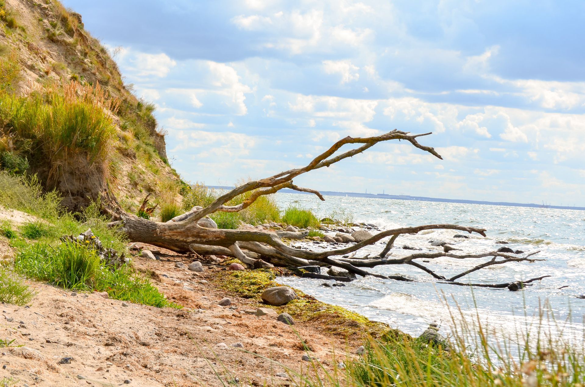 Nur wenige Schritte vom Haus entfernt fällt die Küste steil zum Bodden ab. Zwischen Findlingen, Geröll und Strandgut zeigt sich hier die ganze Kraft des Wassers. Bei jedem Spaziergang verändert sich das Bild – mal liegen neue Steine frei, mal glitzert das Licht zwischen den Wellen. Eine Landschaft, die roh und echt geblieben ist – und die direkt vor Ihrer Haustür beginnt.